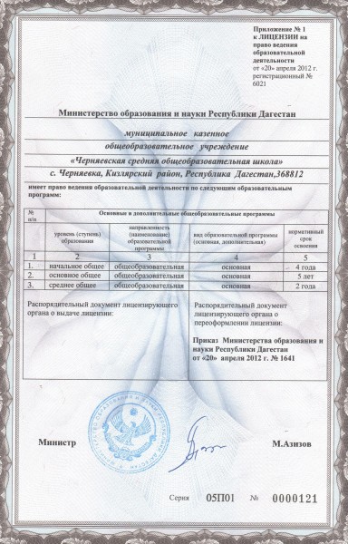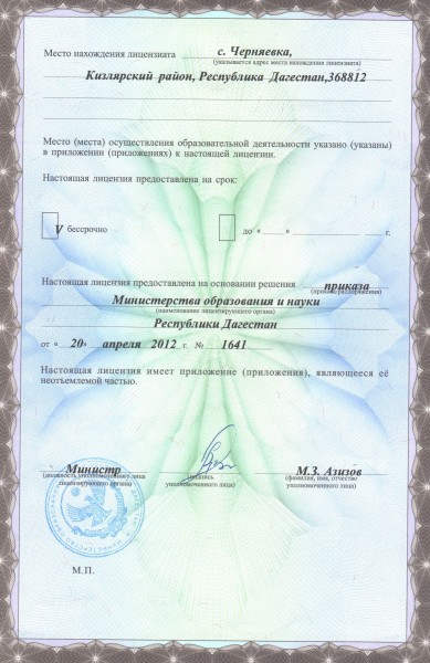 | Адрес местонахождения образовательной организации* | 368812 Республика Дагестан, Кизлярский район село Черняевка, улица Вакуленко 1 |
